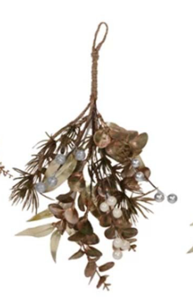This hanging faux evergreen and berry bunch with Metallic finishes is a festive and realistic looking way to decorate the gifts or home. The gift topper features a faux evergreen and berry bunch with a metallic finish that gives it an elegant and sparkling look. It is made of PVC and metal, and designed to last for many seasons. This is ideal for hanging on gift boxes, baskets, bags, or jars, or for decorating the door, window, wall, or fireplace. Use the metal hook to hang it easily and securely. The gift topper measures 11.75 inches in length, 6 inches in width, and 2 inches in height, and comes in 5 different styles to choose from. A beautiful choice for adding some winter wonderland vibes to home decor. Ideal for hanging on gift boxes, baskets, bags, or jars, or for decorating the door, window, wall, or fireplace.
