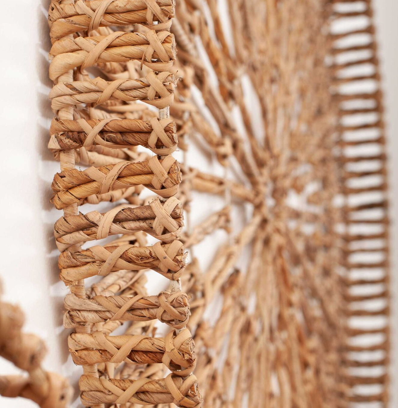Make any ordinary wall a statement piece with this hand-woven round rattan decor. This versatile wall accent can be mounted or displayed from any angle. Perfect for bringing a warm coastal feel to any space.