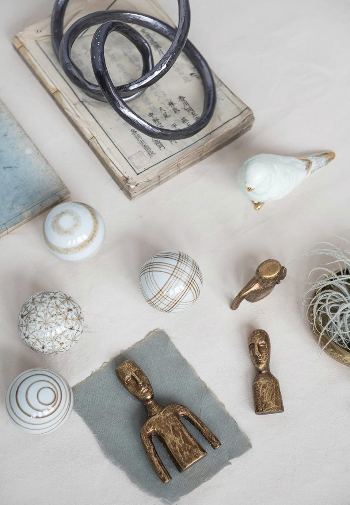 These display pieces are an easy way to accent any unique home. Made out of cast iron, these figures come in 3 styles, each featuring an antique gold finish. These are a beautiful display set for any stylish home, and look great on any shelves 3"L x 1"W x 5-3/4"H, 1-1/4"L x 1"W x 4"H & 3-1/4"L x 1"W x 3-1/2"H Cast Iron Figures, Antique Gold Finish, Set of 3
