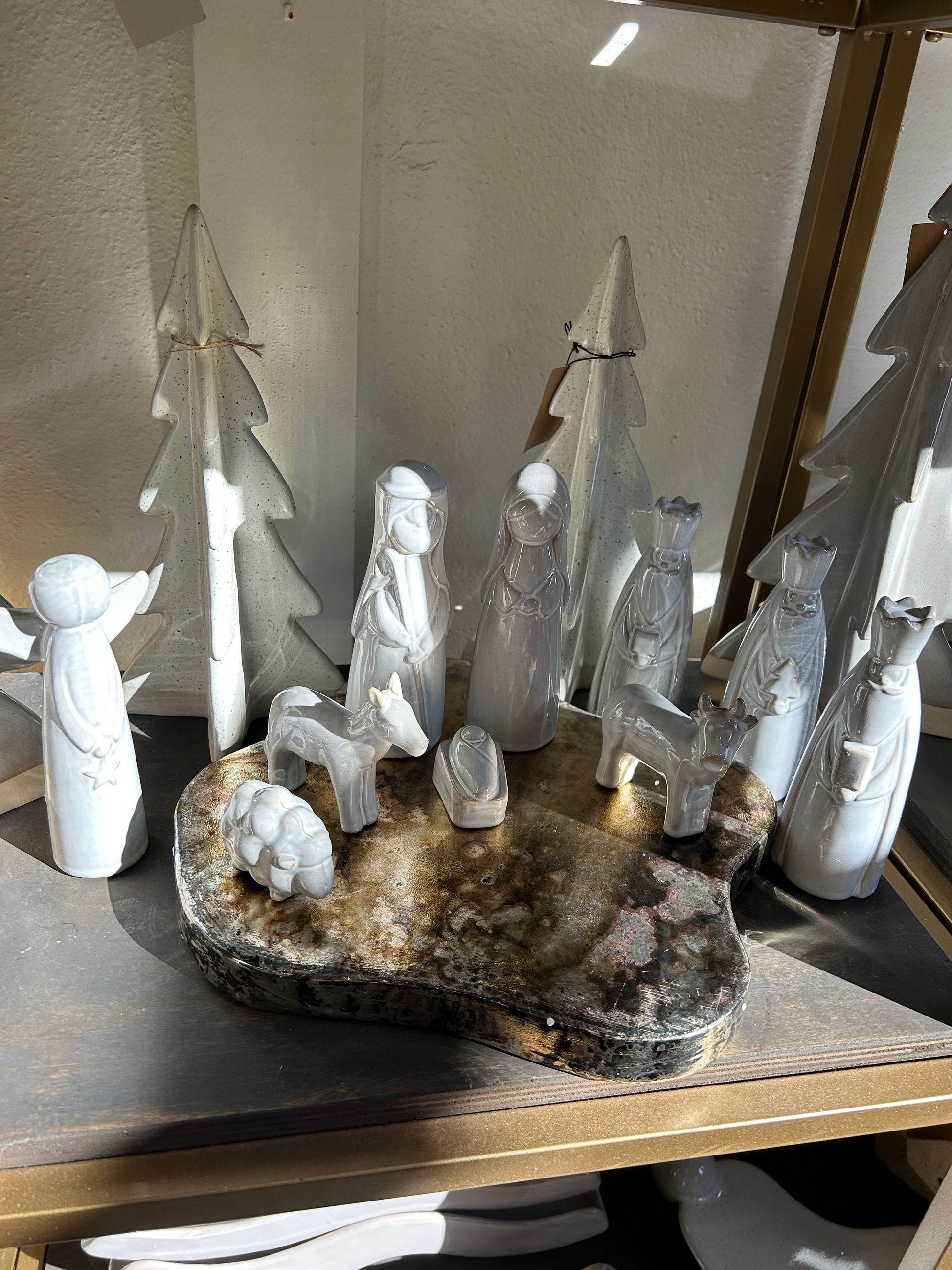 Stoneware Nativity Set, Reactive Glaze, White, Set of 9 (Each Will Vary)