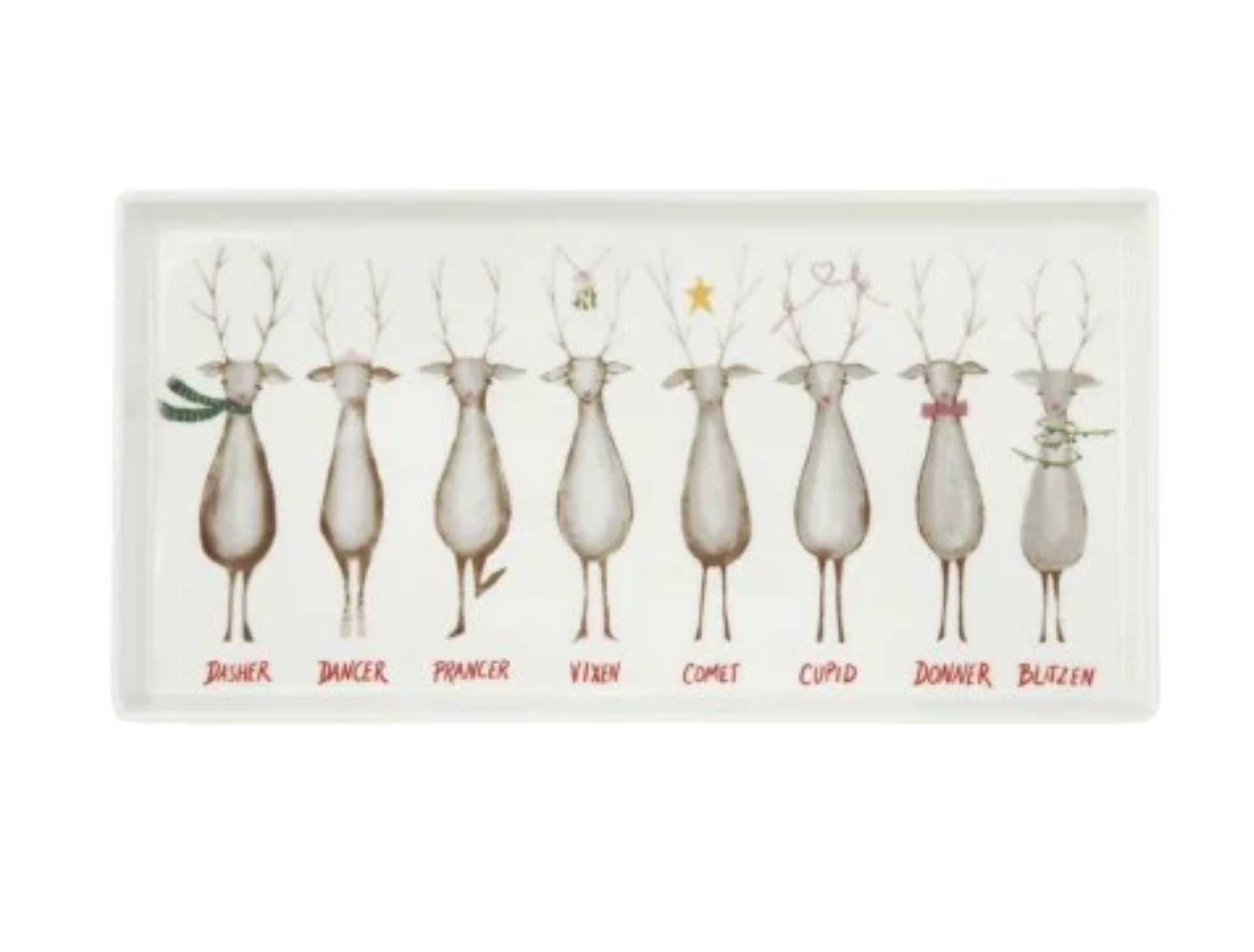 A large portion of the holiday season is spent creating special meals and desserts or devouring those scrumptious recipes. Make sure the kitchen is ready by adding this Santa's Reindeer serving platter which lists each of their names. It will add the perfect touch to a shelf or the center of the holiday table.
