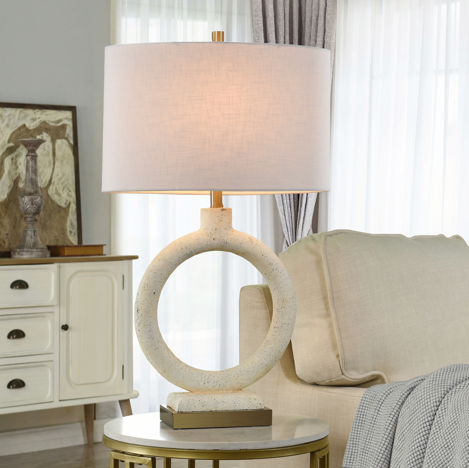 Speckled Cream Table Lamp | Open Circle Cement Design in Textured Cream Finish | 31in ht