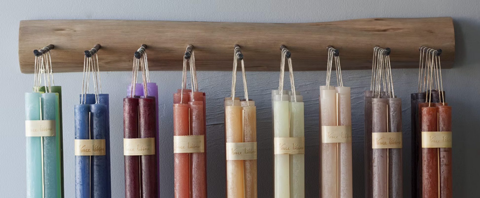 Another great size in the Timber® Candle line by Vance Kitra, this hanging pair of tapers are sure to be a hit. They measure .75" around and 12" tall for a great burn time 14 hours.