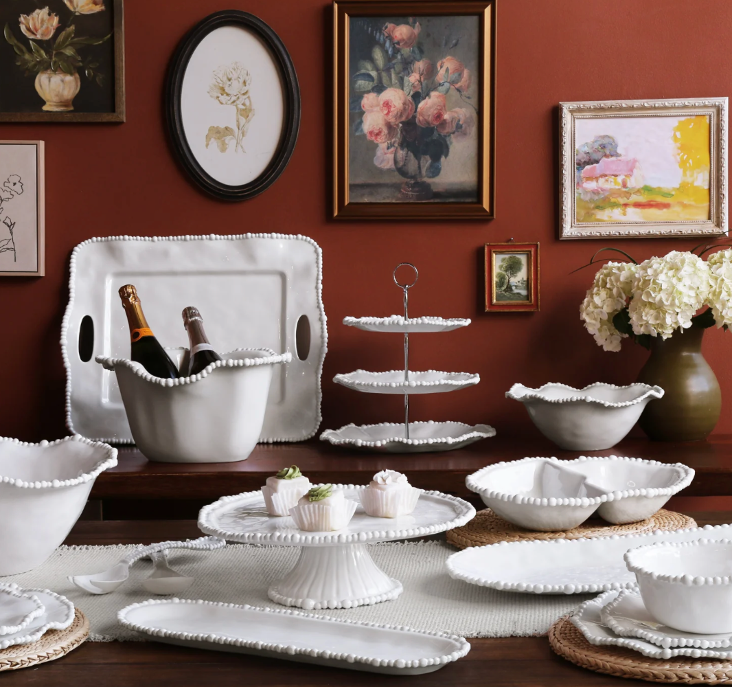 From the popular Alegria Collection of luxury melamine, an ice bucket ideal for serving bottles of chilled wine. Celebrate in style with VIDA Alegria Ice Bucket (White), made of luxury melamine with the look of fine ceramics. Edged with a border of rippling pearls, the generously proportioned piece is designed to serve icy-cold bottles of wine, beer, or soda that guests will enjoy from a serving piece they will love. Dishwasher safe, heavy-weight, food safe, BPA and PABA free.