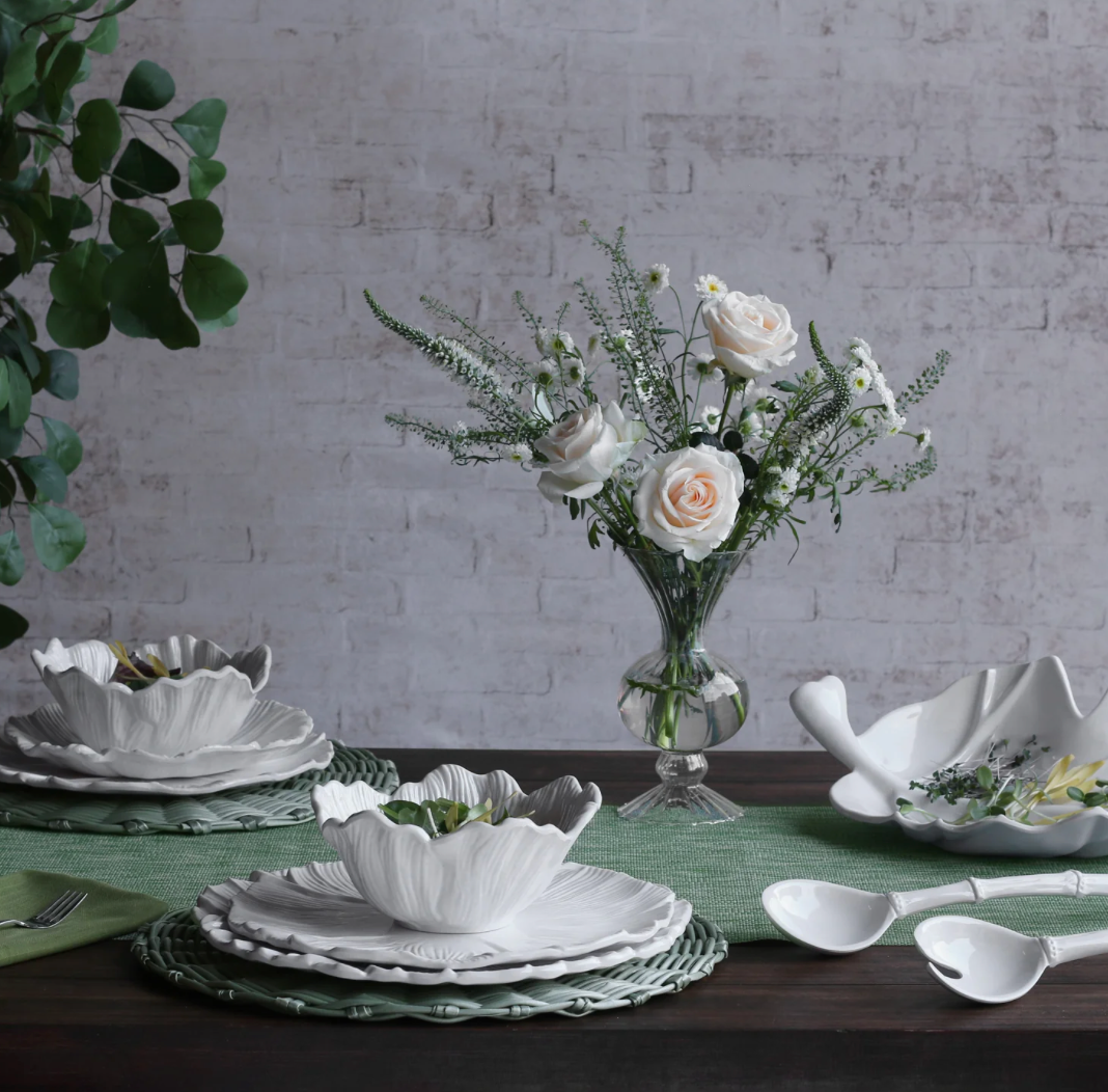 Our Lettuce cereal bowl is the essence of versatility! The VIDA Lettuce Cereal Bowl Set of 4 (White), a great piece from Beatriz Ball's VIDA Collection of luxury melamine, has naturalistic leaf detail and a brilliant white surface. The generous design works well with our VIDA Lettuce dinner and salad plates, charger, and serving pieces. Sold in sets of four. Create a table with a fun and classy Beatriz Ball twist! It looks great when sharing a table with Poppy items from our signature metal line too. Perfect for a variety of serving needs--soups, snacks and salads come to mind--the cereal bowl has the luster, heft and look of a ceramic piece. Made of luxury melamine for everyday enjoyment, this piece is ideally suited for indoor and outdoor entertainment. Dishwasher safe (top rack), heavy weight, food safe, BPA and PABA free.