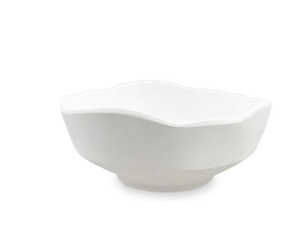 Description: Small but mighty. Presented in a matte white finish, the VIDA Nube Dakota Small Bowl (White) is a delightful blend of bold design and supreme versatility. The Dakota bowl represents a point of departure for the VIDA Nube collection. The handsome bowl features a chiseled rim, faceted edge, and raised base--all presented in sophisticated Beatriz Ball style. Great for serving dips, salsas, salted nuts, and other snacks. The bowl also makes an attractive decorative accent. An original Beatriz Ball design. Made of luxury melamine for everyday enjoyment, this piece is ideally suited for indoor and outdoor entertainment. Dishwasher safe (top rack), heavy weight, food safe, BPA and PABA free.