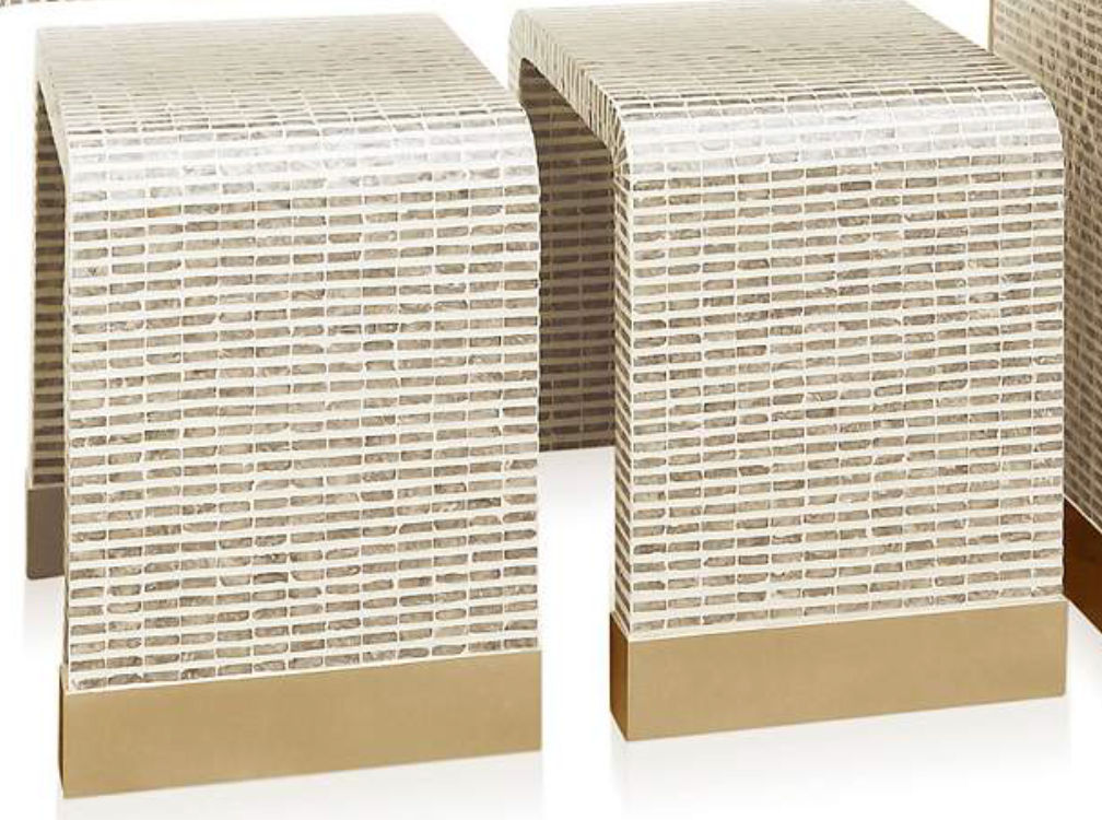 Immerse your space with the vibrant artistry of the stunning waterfall end table. Its waterfall silhouette exudes soothing geometry fulfilling the needs of any shared space. Ivory Taupe Mother of Pearl Mosaic and Curved Plywood Frame creating broad straight legs for excellent stability and support in an eye-catching design. Providing a sense of mosaic grace, the waterfall end table invigorates any setting.
